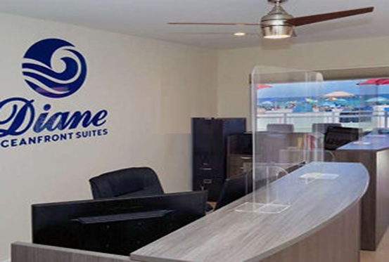 For guests with disabilities, Diane Oceanfront Suites offers a first-floor ADA-compliant room with a beautiful beachfront view. The suite features a wider hallway, comfortable furnishings, and a roll-in shower for added convenience. Guests also benefit from easy access to the parking lot through a nearby entrance, while ramps on both sides of the building provide smooth access to the boardwalk and other areas of the property. Enjoy comfort, ease, and sunshine at Diane Oceanfront Suites on Hollywood Beach.